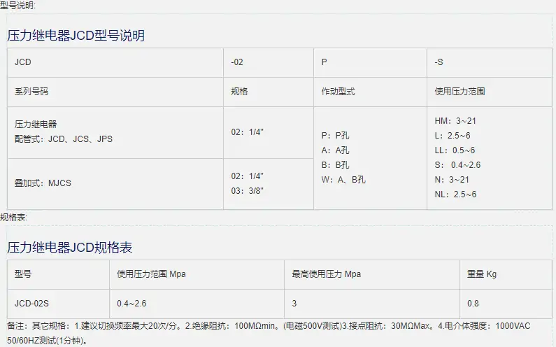 壓力繼電器JC-JCS有如下型號(hào):JC-JCS-02-1 JC-JCS-02-N-1 JC-JCS-02-NL-1 JC-JCS-02-NLL-1