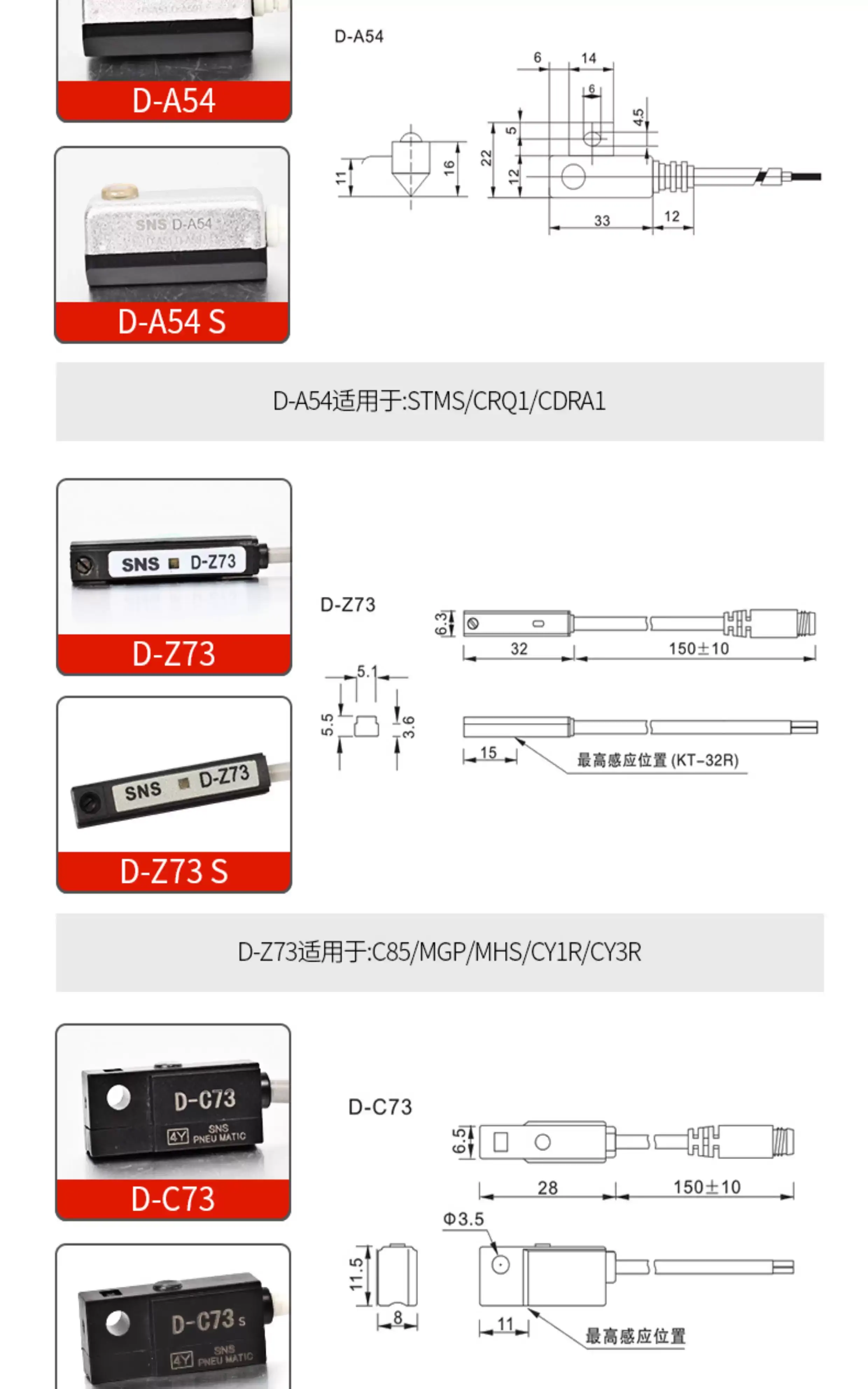 SNS磁性感應(yīng)器線開關(guān)CS1/D-F/U/S/J/G/M/Z.A73/54/93氣缸配件