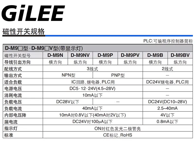 GILEE氣缸傳感器磁性開關(guān)CDMSG/H/J/E兩線常開電子無觸點(diǎn)