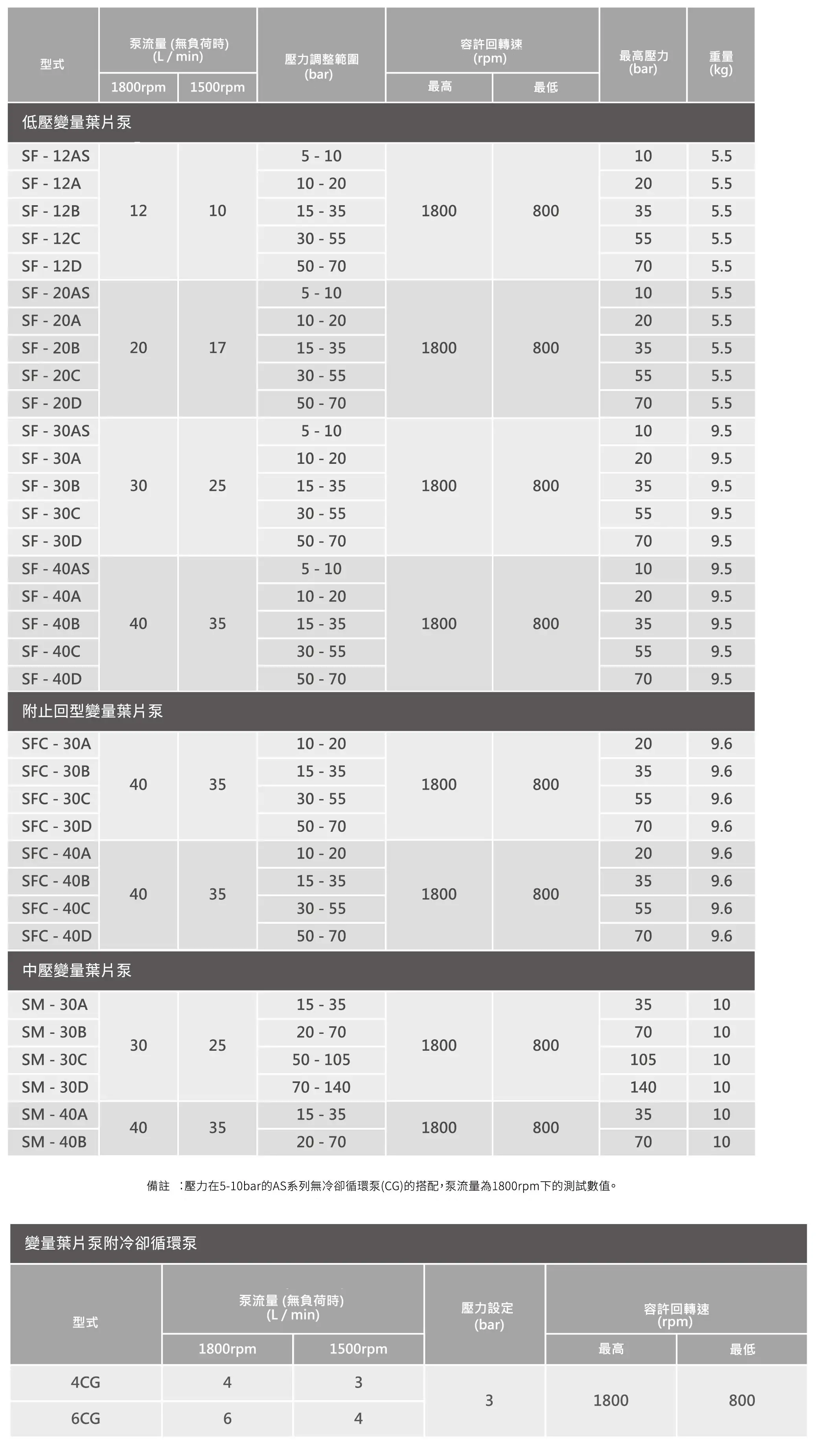 | 型號(hào) | 排量 (cc/rev) | 持續(xù)壓力 (kgf/cm2) | 峰值壓力 (kgf/cm2) | 轉(zhuǎn)速范圍 (rpm) | 流量 (L/min, 1500rpm) |