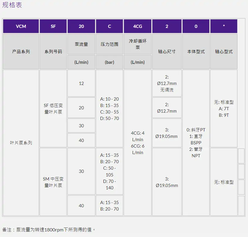型號(hào)排量 (cc/rev)持續(xù)壓力 (MPa)峰值壓力 (MPa)轉(zhuǎn)速范圍 (rpm)流量 (L/min@1500rpm)